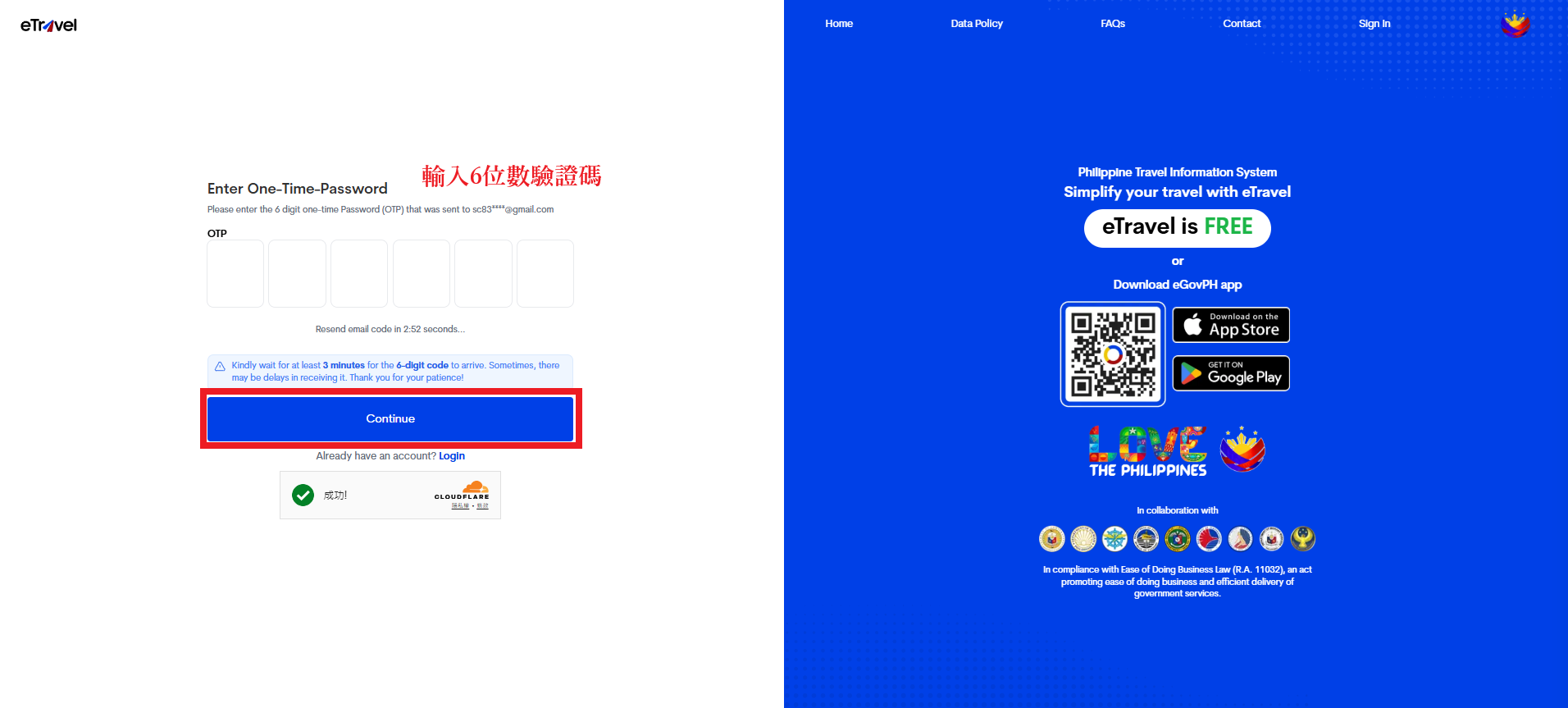 輸入電子信箱,系統會傳送6位數驗證碼,請填入系統完成驗證。