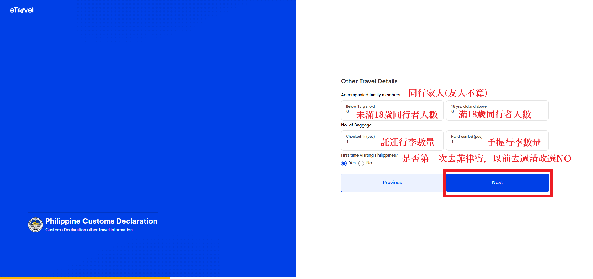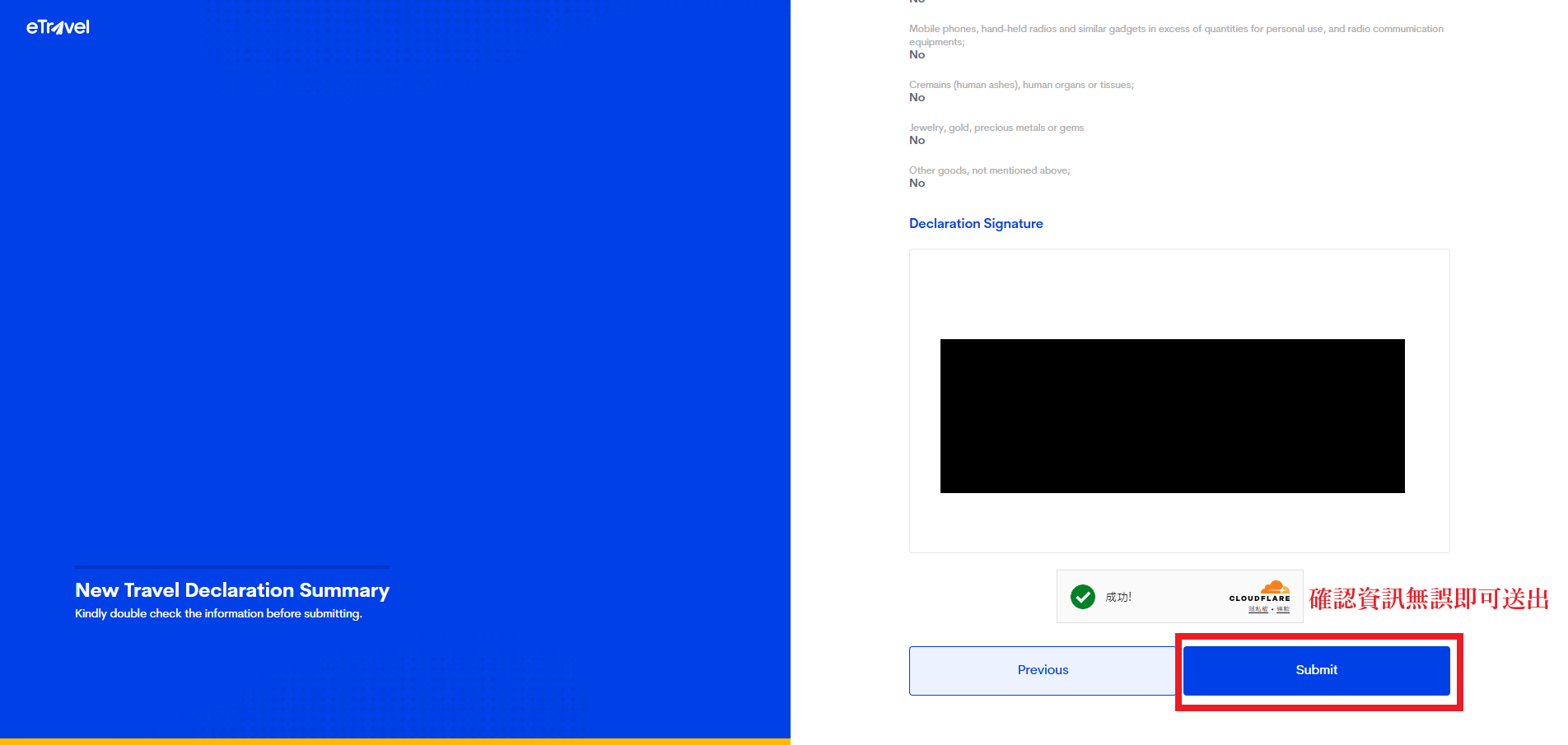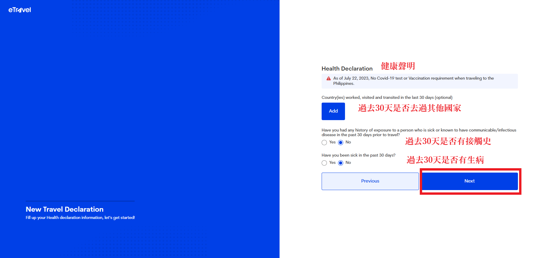 點選「New Travel Declaration」,填寫入境及申報資訊。
