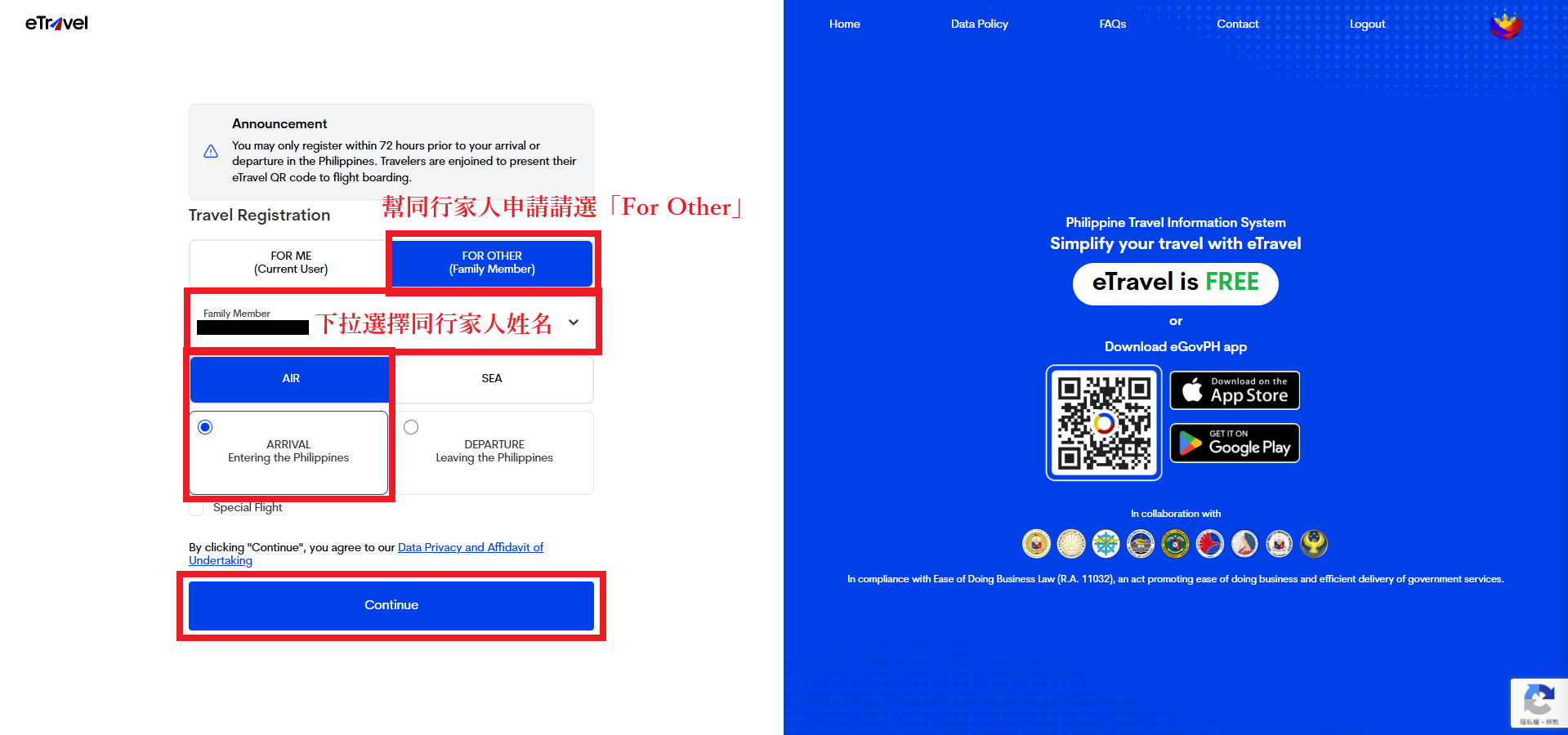 如須協助同行家人申請,可以點選上圖「Back to Home」,